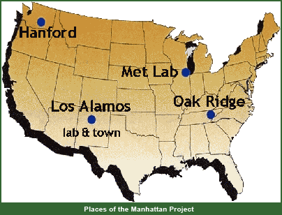 맨해튼 프로젝트의 주요 거점은 시카고, 오크리지, 핸포드, 로스 앨러모스이다.